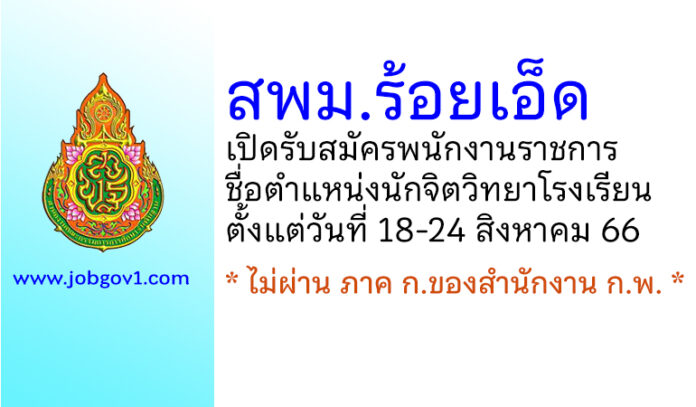 สำนักงานเขตพื้นที่การศึกษามัธยมศึกษาร้อยเอ็ด รับสมัครพนักงานราชการ ตำแหน่งนักจิตวิทยาโรงเรียน ตั้งแต่วันที่ 18-24 สิงหาคม 2566
