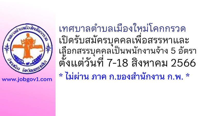 เทศบาลตำบลเมืองใหม่โคกกรวด รับสมัครบุคคลเพื่อสรรหาและเลือกสรรบุคคลเป็นพนักงานจ้าง 5 อัตรา ตั้งแต่วันที่ 7-18 สิงหาคม 2566