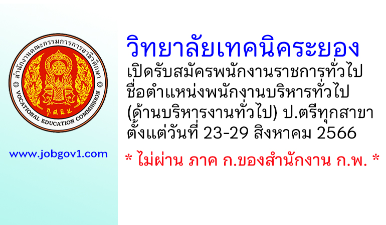 วิทยาลัยเทคนิคระยอง รับสมัครพนักงานราชการ ตำแหน่งพนักงานบริหารทั่วไป (ด้านบริหารงานทั่วไป) ตั้งแต่วันที่ 23-29 สิงหาคม 2566