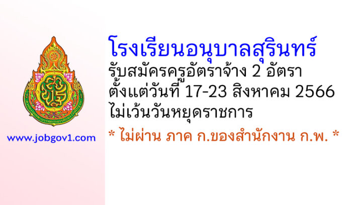 โรงเรียนอนุบาลสุรินทร์ รับสมัครครูอัตราจ้าง 2 อัตรา ตั้งแต่วันที่ 17-23 สิงหาคม 2566