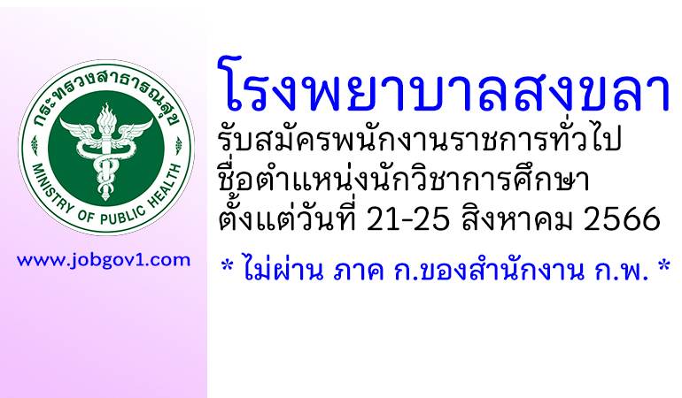 โรงพยาบาลสงขลา รับสมัครพนักงานราชการทั่วไป ตำแหน่งนักวิชาการศึกษา ตั้งแต่วันที่ 21-25 สิงหาคม 2566