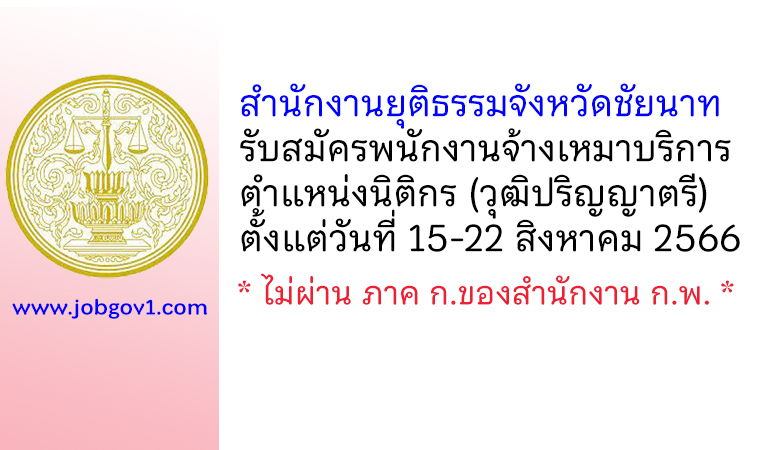 สำนักงานยุติธรรมจังหวัดชัยนาท รับสมัครพนักงานจ้างเหมาบริการ ตำแหน่งนิติกร ตั้งแต่วันที่ 15-22 สิงหาคม 2566