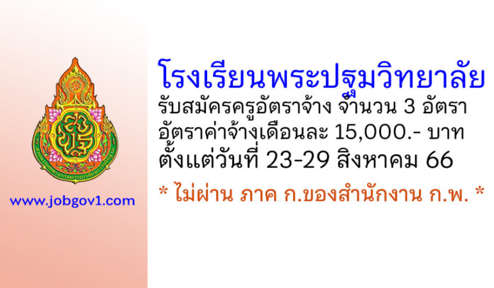 โรงเรียนพระปฐมวิทยาลัย รับสมัครครูอัตราจ้าง จำนวน 3 อัตรา ตั้งแต่วันที่ 23-29 สิงหาคม 2566