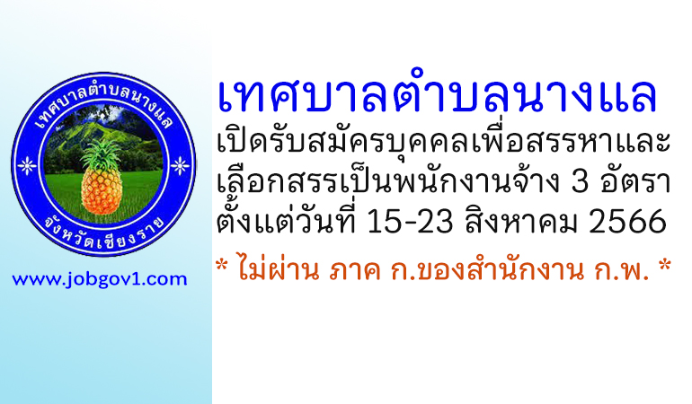 เทศบาลตำบลนางแล รับสมัครบุคคลเพื่อสรรหาและเลือกสรรเป็นพนักงานจ้าง 3 อัตรา ตั้งแต่วันที่ 15-23 สิงหาคม 2566