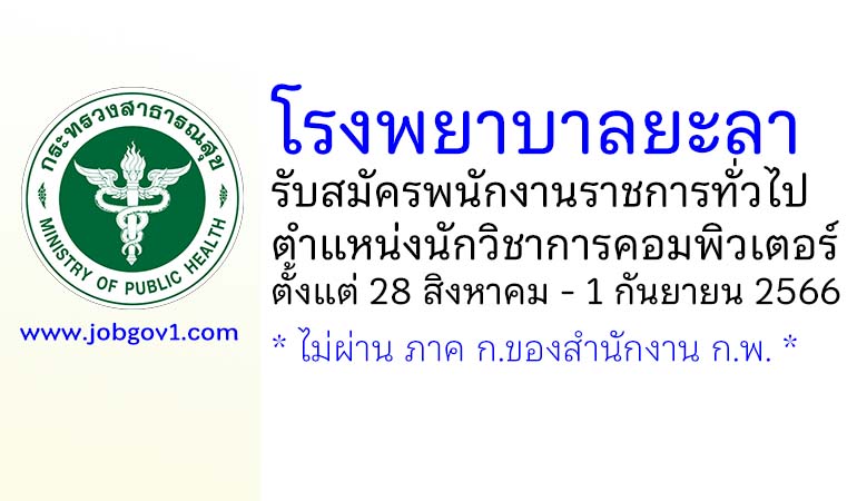 โรงพยาบาลยะลา รับสมัครพนักงานราชการทั่วไป ตำแหน่งนักวิชาการคอมพิวเตอร์ ตั้งแต่ 28 สิงหาคม – 1 กันยายน 2566