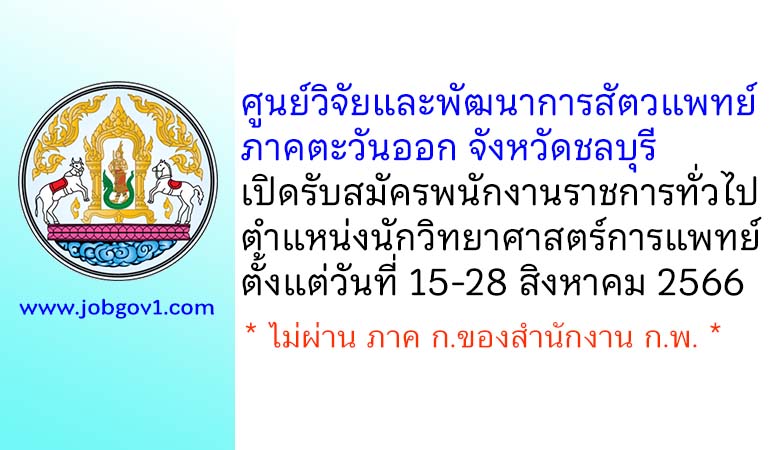 ศูนย์วิจัยและพัฒนาการสัตวแพทย์ภาคตะวันออก รับสมัครพนักงานราชการทั่วไป ตำแหน่งนักวิทยาศาสตร์การแพทย์ ตั้งแต่วันที่ 15-28 สิงหาคม 2566