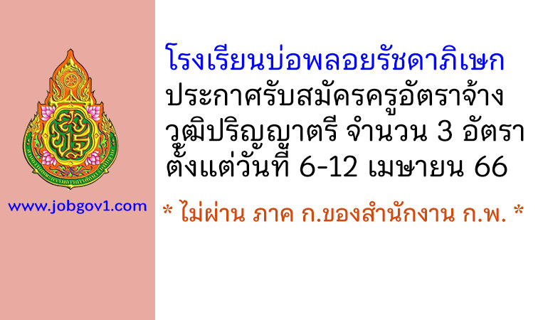 โรงเรียนบ่อพลอยรัชดาภิเษก รับสมัครครูอัตราจ้าง 3 อัตรา ตั้งแต่วันที่ 6-12 เมษายน 2566