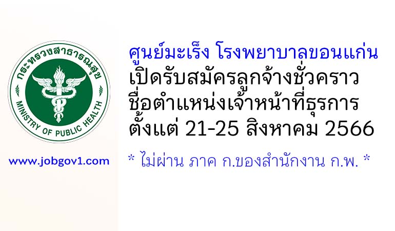 ศูนย์มะเร็ง โรงพยาบาลขอนแก่น รับสมัครลูกจ้างชั่วคราว ตำแหน่งเจ้าหน้าที่ธุรการ ตั้งแต่วันที่ 21-25 สิงหาคม 2566