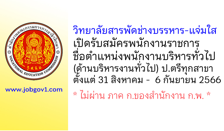 วิทยาลัยสารพัดช่างบรรหาร-แจ่มใส รับสมัครพนักงานราชการ ตำแหน่งพนักงานบริหารทั่วไป (ด้านบริหารงานทั่วไป) ตั้งแต่ 31 สิงหาคม – 6 กันยายน 2566
