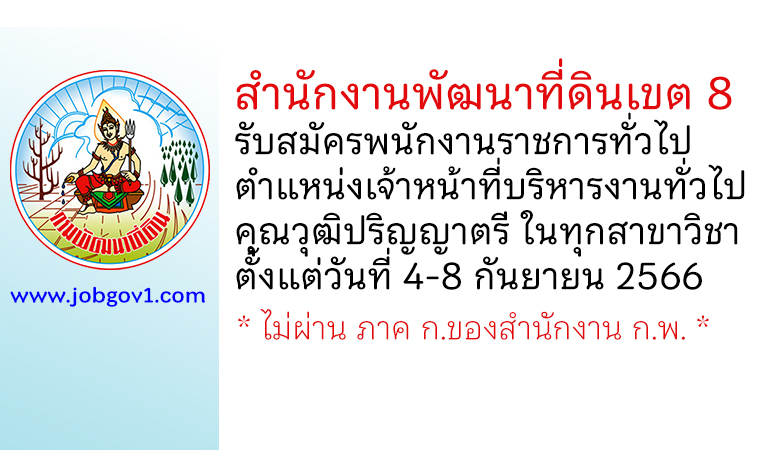 สำนักงานพัฒนาที่ดินเขต 8 รับสมัครพนักงานราชการทั่วไป ตำแหน่งเจ้าหน้าที่บริหารงานทั่วไป ตั้งแต่วันที่ 4-8 กันยายน 2566