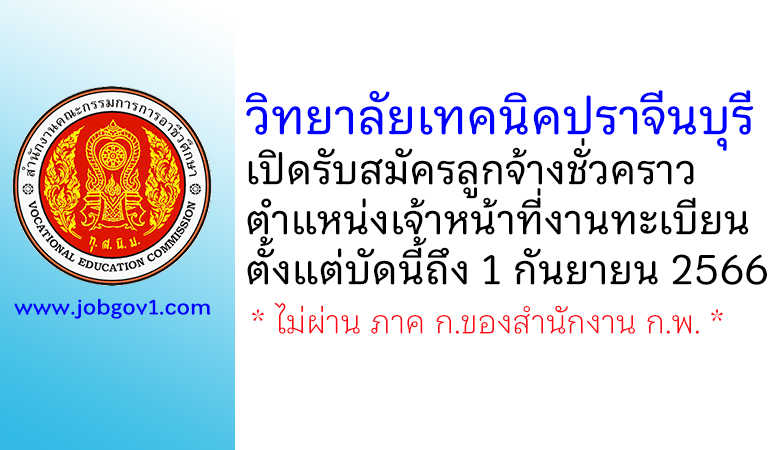 วิทยาลัยเทคนิคปราจีนบุรี รับสมัครลูกจ้างชั่วคราว ตำแหน่งเจ้าหน้าที่งานทะเบียน ตั้งแต่บัดนี้ถึง 1 กันยายน 2566