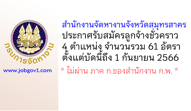 สำนักงานจัดหางานจังหวัดสมุทรสาคร รับสมัครลูกจ้างชั่วคราว 61 อัตรา ตั้งแต่บัดนี้ถึง 1 กันยายน 2566