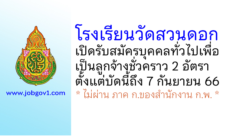 โรงเรียนวัดสวนดอก รับสมัครบุคคลทั่วไปเพื่อเป็นลูกจ้างชั่วคราว 2 อัตรา ตั้งแต่บัดนี้ถึง 7 กันยายน 2566
