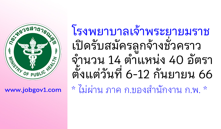 โรงพยาบาลเจ้าพระยายมราช รับสมัครลูกจ้างชั่วคราว จำนวน 14 ตำแหน่ง 40 อัตรา ตั้งแต่วันที่ 6-12 กันยายน 2566