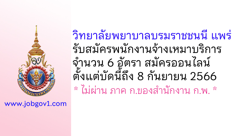 วิทยาลัยพยาบาลบรมราชชนนี แพร่ รับสมัครพนักงานจ้างเหมาบริการ 6 อัตรา ตั้งแต่บัดนี้ถึง 8 กันยายน 2566