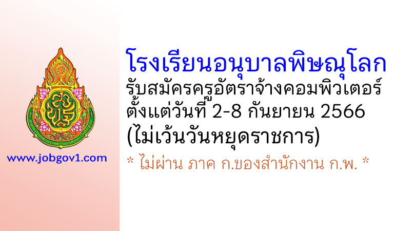 โรงเรียนอนุบาลพิษณุโลก รับสมัครครูอัตราจ้างคอมพิวเตอร์ ตั้งแต่วันที่ 2-8 กันยายน 2566