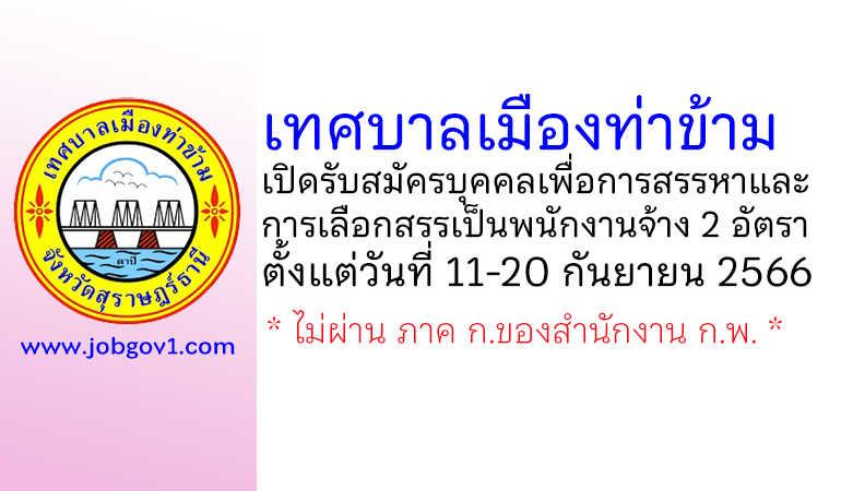 เทศบาลเมืองท่าข้าม รับสมัครบุคคลเพื่อการสรรหาและการเลือกสรรเป็นพนักงานจ้าง 2 อัตรา ตั้งแต่วันที่ 11-20 กันยายน 2566