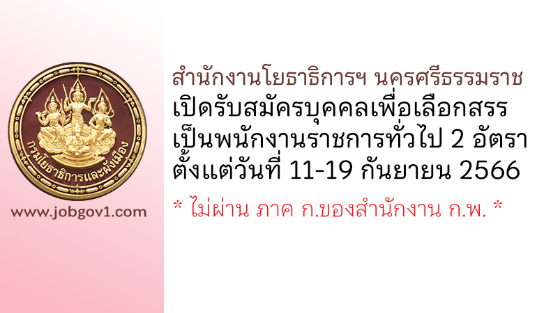สำนักงานโยธาธิการและผังเมืองจังหวัดนครศรีธรรมราช รับสมัครบุคคลเพื่อเลือกสรรเป็นพนักงานราชการทั่วไป 2 อัตรา ตั้งแต่วันที่ 11-19 กันยายน 2566