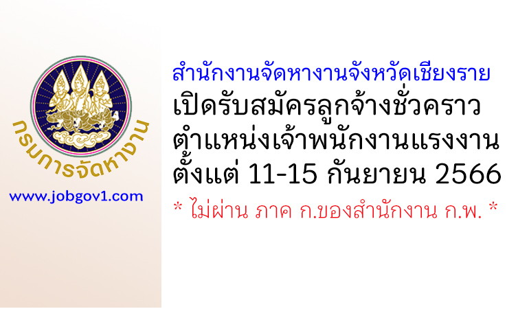 สำนักงานจัดหางานจังหวัดเชียงราย รับสมัครลูกจ้างชั่วคราว ตำแหน่งเจ้าพนักงานแรงงาน ตั้งแต่วันที่ 11-15 กันยายน 2566