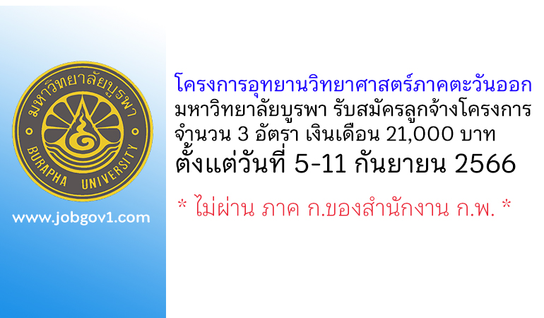 โครงการอุทยานวิทยาศาสตร์ภาคตะวันออก มหาวิทยาลัยบูรพา รับสมัครลูกจ้างโครงการ 3 อัตรา ตั้งแต่วันที่ 5-11 กันยายน 2566