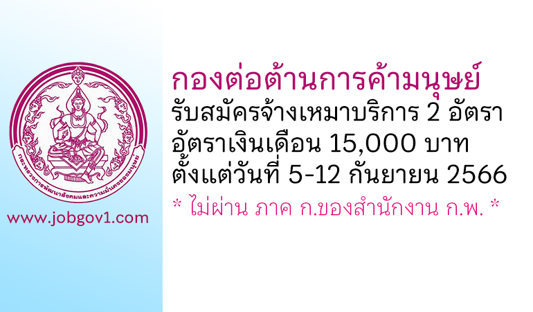 กองต่อต้านการค้ามนุษย์ รับสมัครสอบคัดเลือกจ้างเหมาบริการ 2 อัตรา ตั้งแต่วันที่ 5-12 กันยายน 2566