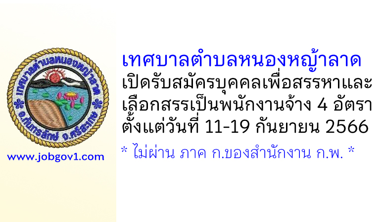 เทศบาลตำบลหนองหญ้าลาด รับสมัครบุคคลเพื่อสรรหาและเลือกสรรเป็นพนักงานจ้าง 4 อัตรา ตั้งแต่วันที่ 11-19 กันยายน 2566