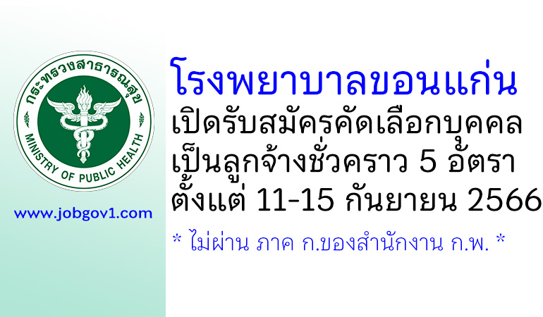 โรงพยาบาลขอนแก่น รับสมัครคัดเลือกบุคคลเข้าปฏิบัติงานเป็นลูกจ้างชั่วคราว 5 อัตรา ตั้งแต่วันที่ 11-15 กันยายน 2566