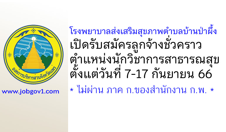 โรงพยาบาลส่งเสริมสุขภาพตำบลบ้านป่าผึ้ง รับสมัครลูกจ้างชั่วคราว ตำแหน่งนักวิชาการสาธารณสุข ตั้งแต่วันที่ 7-17 กันยายน 2566