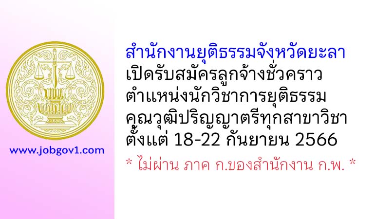 สำนักงานยุติธรรมจังหวัดยะลา รับสมัครลูกจ้างชั่วคราว ตำแหน่งนักวิชาการยุติธรรม ตั้งแต่วันที่ 18-22 กันยายน 2566