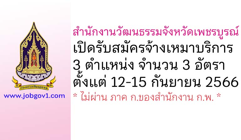 สำนักงานวัฒนธรรมจังหวัดเพชรบูรณ์ รับสมัครจ้างเหมาบริการ 3 อัตรา ตั้งแต่วันที่ 12-15 กันยายน 2566