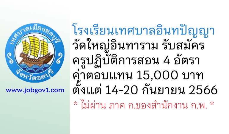 โรงเรียนเทศบาลอินทปัญญา วัดใหญ่อินทาราม รับสมัครครูปฏิบัติการสอน 4 อัตรา ตั้งแต่วันที่ 14-20 กันยายน 2566