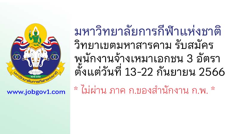 มหาวิทยาลัยการกีฬาแห่งชาติ วิทยาเขตมหาสารคาม รับสมัครพนักงานจ้างเหมาเอกชน 3 อัตรา ตั้งแต่วันที่ 13-22 กันยายน 2566