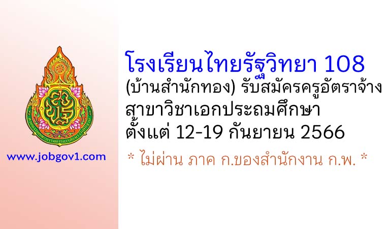 โรงเรียนไทยรัฐวิทยา 108 (บ้านสำนักทอง) รับสมัครครูอัตราจ้าง วิชาเอกประถมศึกษา ตั้งแต่วันที่ 12-19 กันยายน 2566