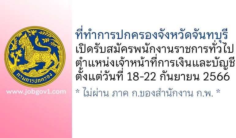 ที่ทำการปกครองจังหวัดจันทบุรี รับสมัครพนักงานราชการทั่วไป ตำแหน่งเจ้าหน้าที่การเงินและบัญชี ตั้งแต่วันที่ 18-22 กันยายน 2566