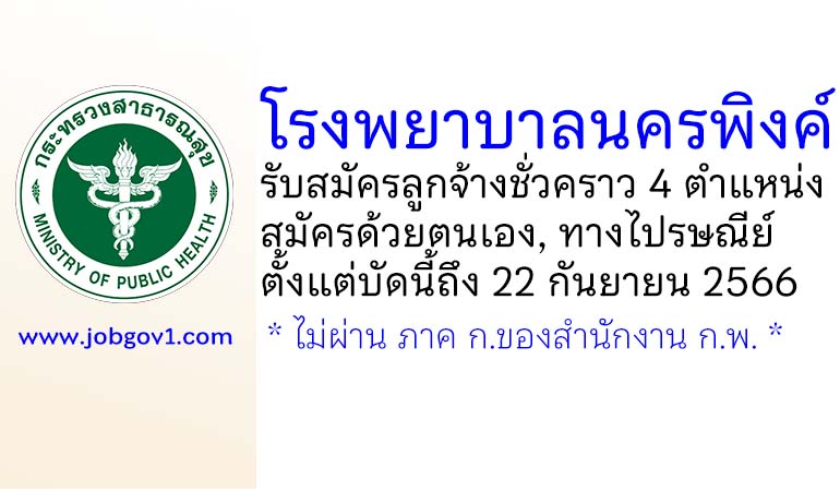 โรงพยาบาลนครพิงค์ รับสมัครลูกจ้างชั่วคราว 4 ตำแหน่ง ตั้งแต่บัดนี้ถึง 22 กันยายน 2566