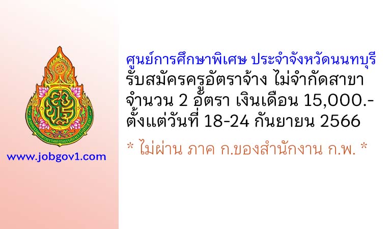 ศูนย์การศึกษาพิเศษ ประจำจังหวัดนนทบุรี รับสมัครครูอัตราจ้าง ไม่จำกัดสาขา 2 อัตรา ตั้งแต่วันที่ 18-24 กันยายน 2566