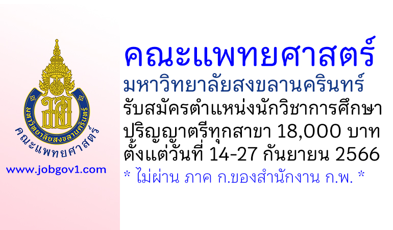คณะแพทยศาสตร์ มหาวิทยาลัยสงขลานครินทร์ รับสมัครตำแหน่งนักวิชาการศึกษา ตั้งแต่วันที่ 14-27 กันยายน 2566
