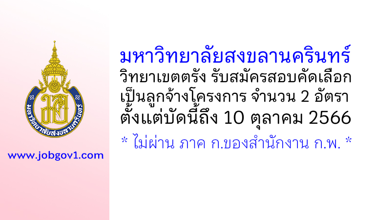 มหาวิทยาลัยสงขลานครินทร์ วิทยาเขตตรัง รับสมัครสอบคัดเลือกเป็นลูกจ้างโครงการ 2 อัตรา ตั้งแต่บัดนี้ถึง 10 ตุลาคม 2566