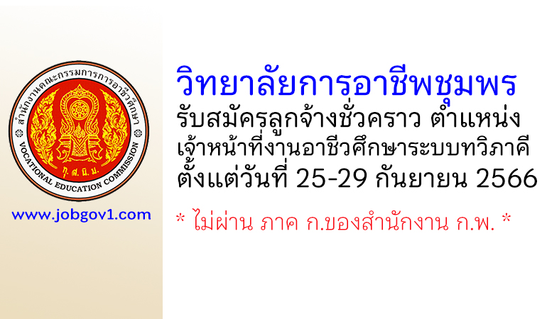 วิทยาลัยการอาชีพชุมพร รับสมัครลูกจ้างชั่วคราว ตำแหน่งเจ้าหน้าที่งานอาชีวศึกษาระบบทวิภาคี ตั้งแต่วันที่ 25-29 กันยายน 2566
