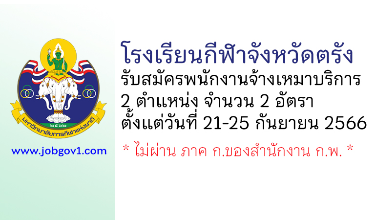 โรงเรียนกีฬาจังหวัดตรัง รับสมัครพนักงานจ้างเหมาบริการ 2 อัตรา ตั้งแต่วันที่ 21-25 กันยายน 2566