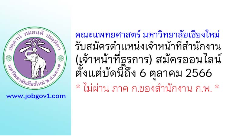 คณะแพทยศาสตร์ มหาวิทยาลัยเชียงใหม่ รับสมัครเจ้าหน้าที่สำนักงาน (เจ้าหน้าที่ธุรการ) ตั้งแต่บัดนี้ถึง 6 ตุลาคม 2566