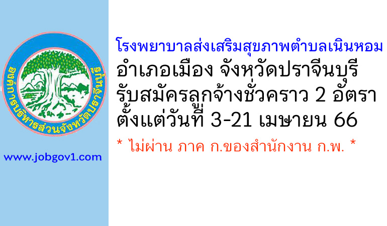 โรงพยาบาลส่งเสริมสุขภาพตำบลเนินหอม รับสมัครบุคคลคัดเลือกลูกจ้างชั่วคราว 2 อัตรา ตั้งแต่วันที่ 3-21 เมษายน 2566