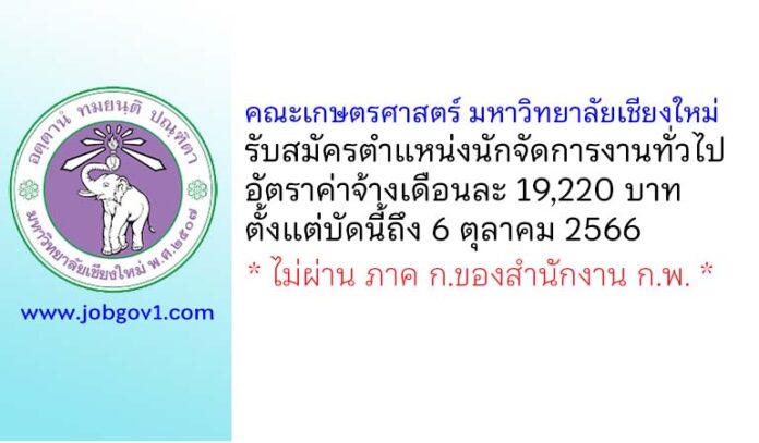 คณะเกษตรศาสตร์ มหาวิทยาลัยเชียงใหม่ รับสมัครตำแหน่งนักจัดการงานทั่วไป ตั้งแต่บัดนี้ถึง 6 ตุลาคม 2566