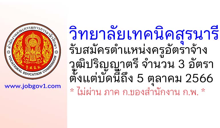 วิทยาลัยเทคนิคสุรนารี รับสมัครครูอัตราจ้าง จำนวน 3 อัตรา ตั้งแต่บัดนี้ถึง 5 ตุลาคม 2566