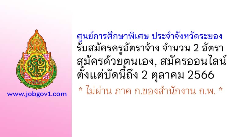 ศูนย์การศึกษาพิเศษ ประจำจังหวัดระยอง รับสมัครครูอัตราจ้าง จำนวน 2 อัตรา ตั้งแต่บัดนี้ถึง 2 ตุลาคม 2566