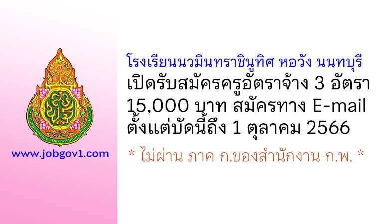 โรงเรียนนวมินทราชินูทิศ หอวัง นนทบุรี รับสมัครครูอัตราจ้าง 3 อัตรา ตั้งแต่บัดนี้ถึง 1 ตุลาคม 2566