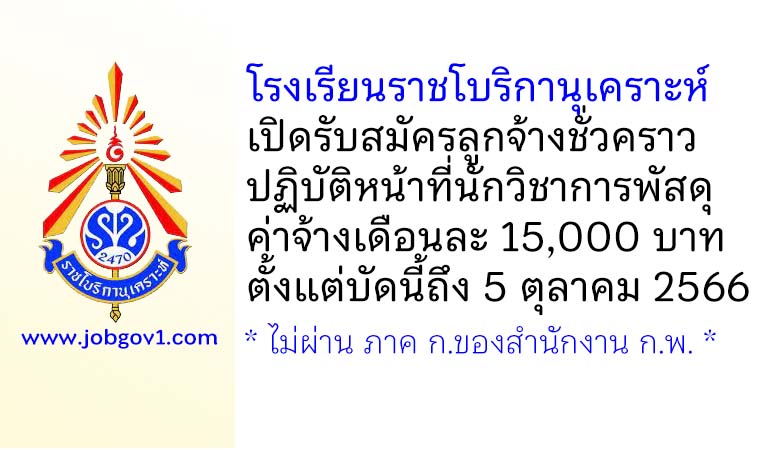 โรงเรียนราชโบริกานุเคราะห์ รับสมัครลูกจ้างชั่วคราว ปฏิบัติหน้าที่นักวิชาการพัสดุ ตั้งแต่บัดนี้ถึง 5 ตุลาคม 2566