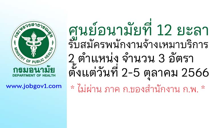 ศูนย์อนามัยที่ 12 ยะลา รับสมัครพนักงานจ้างเหมาบริการ 2 ตำแหน่ง 3 อัตรา ตั้งแต่วันที่ 2-5 ตุลาคม 2566