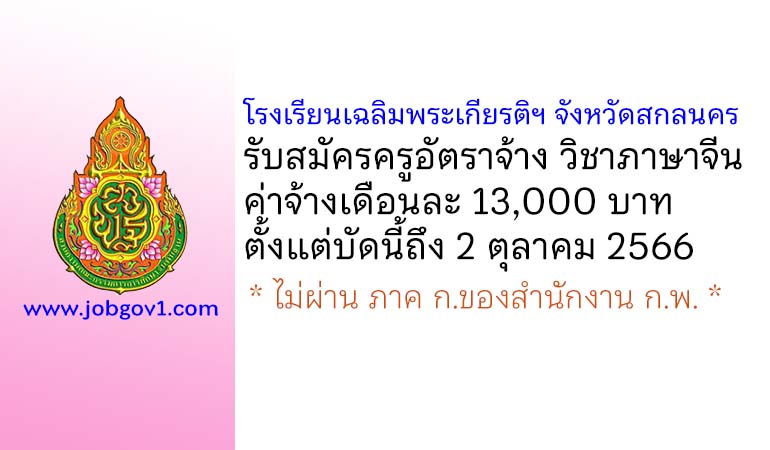 โรงเรียนเฉลิมพระเกียรติฯ จังหวัดสกลนคร รับสมัครครูอัตราจ้าง สาขาวิชาภาษาจีน ตั้งแต่บัดนี้ถึง 2 ตุลาคม 2566