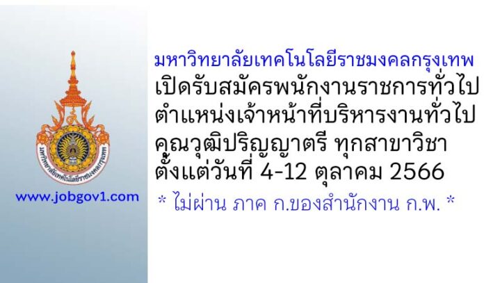 มหาวิทยาลัยเทคโนโลยีราชมงคลกรุงเทพ รับสมัครพนักงานราชการทั่วไป ตำแหน่งเจ้าหน้าที่บริหารงานทั่วไป ตั้งแต่วันที่ 4-12 ตุลาคม 2566